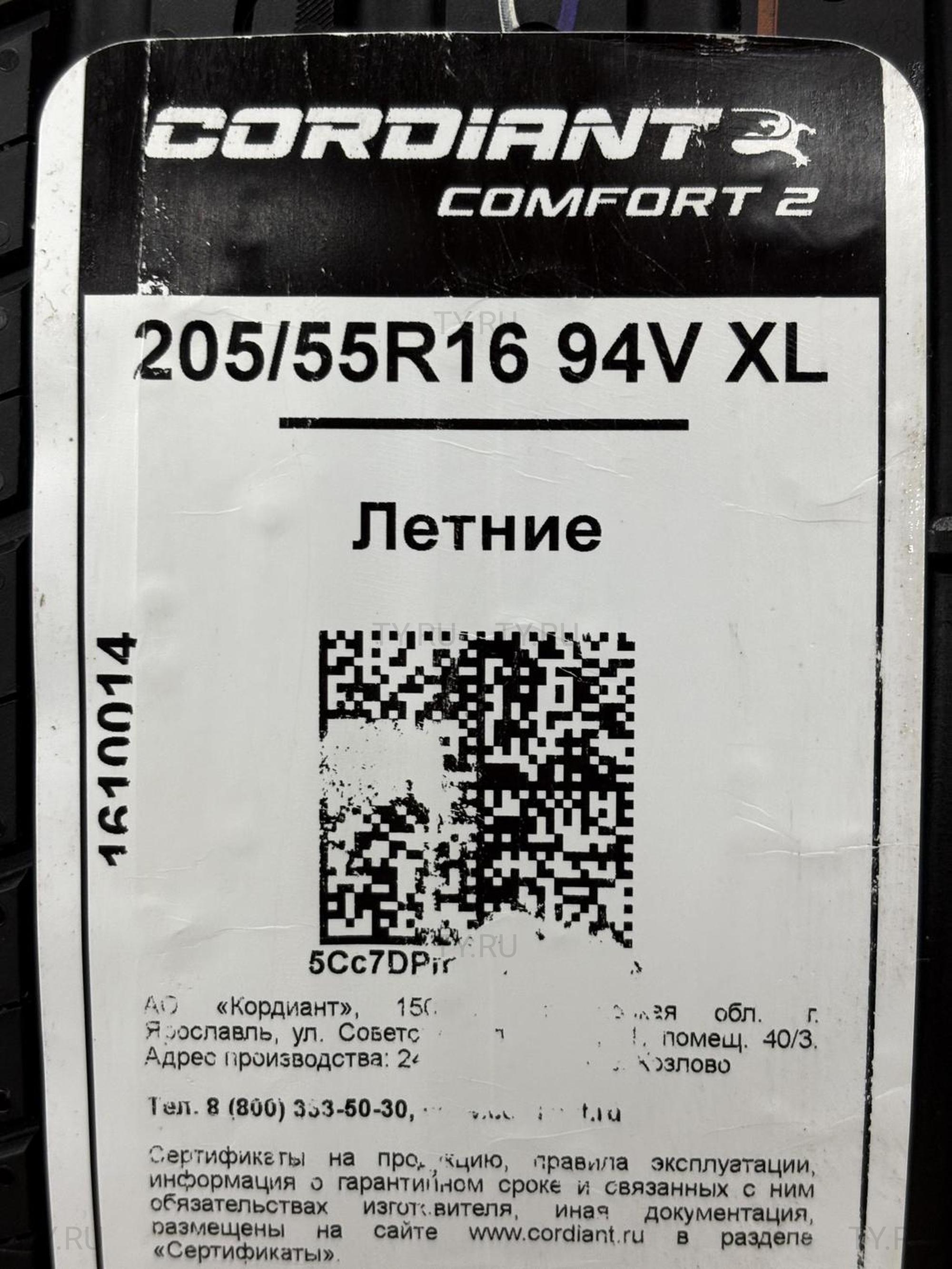 Cordiant Comfort 2 205/55 R16 94V